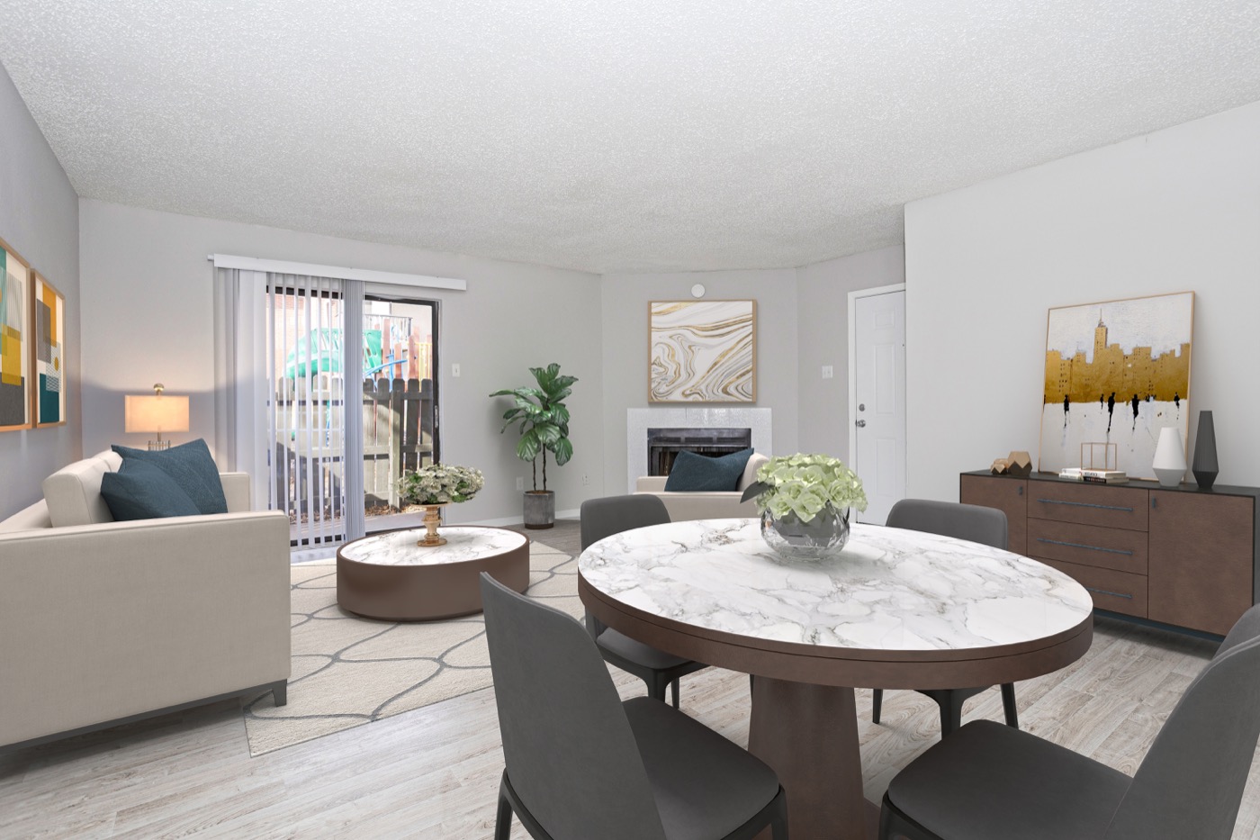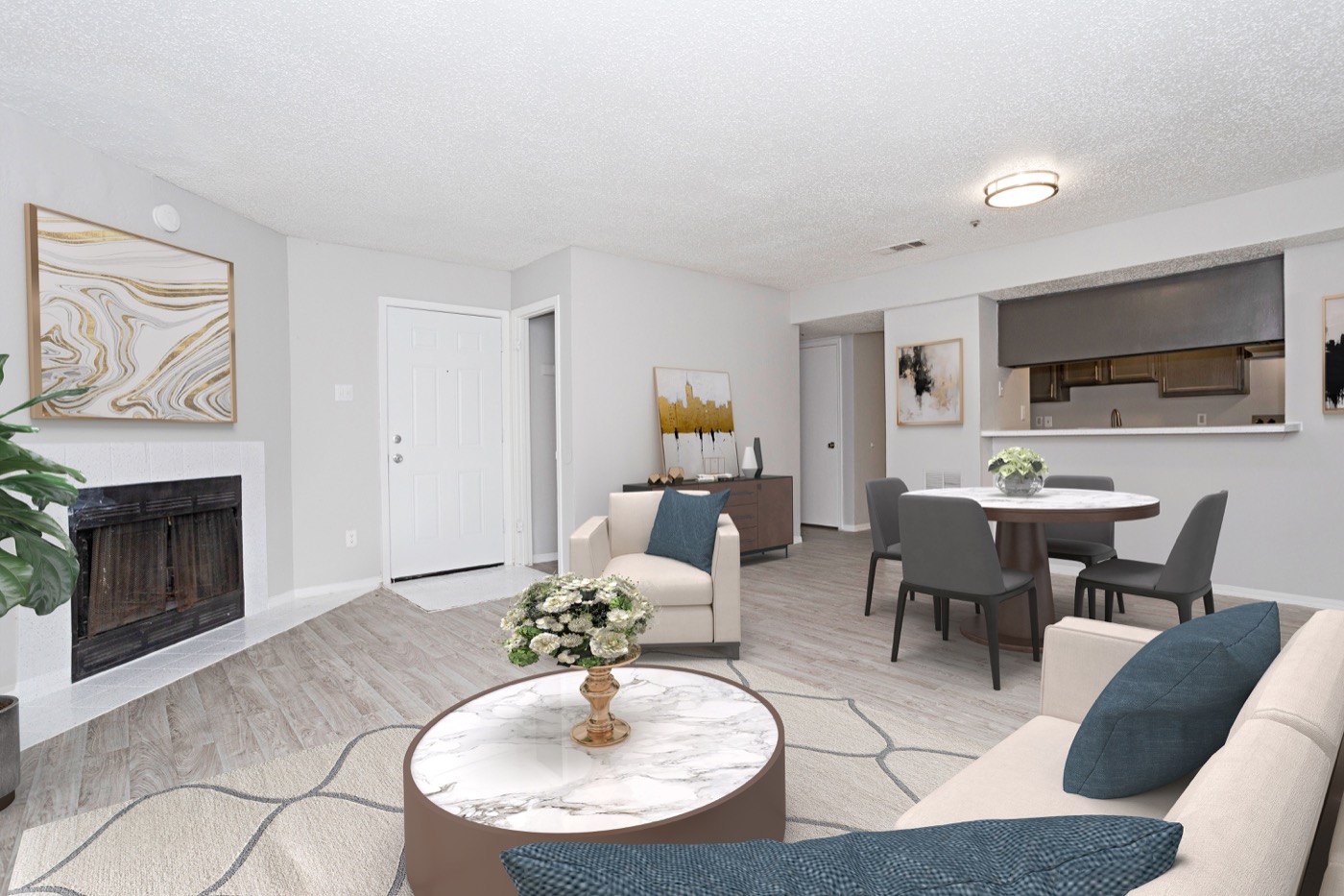 Open two bedroom layout with comfortable gathering spaces.